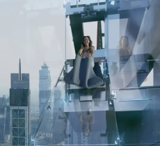 Sky Views Observatory At 219.5 meters above Dubai, the Sky Views observatory features a stunning 25m-long glass floor at the cantilevered enjoying exceptional views of the Burj Khalifa, the city, visitors can also admire through a panoramic elevator with glass on 3 sides, and the Panorama 52 restaurant. Sky Views offers unique adrenaline-raising experiences introduced for the first time in the region, including an outdoor glass slide propelling visitors from level 53 at 219.5 m to level 52 at 215.5 m while enclosed in a transparent glass tube.